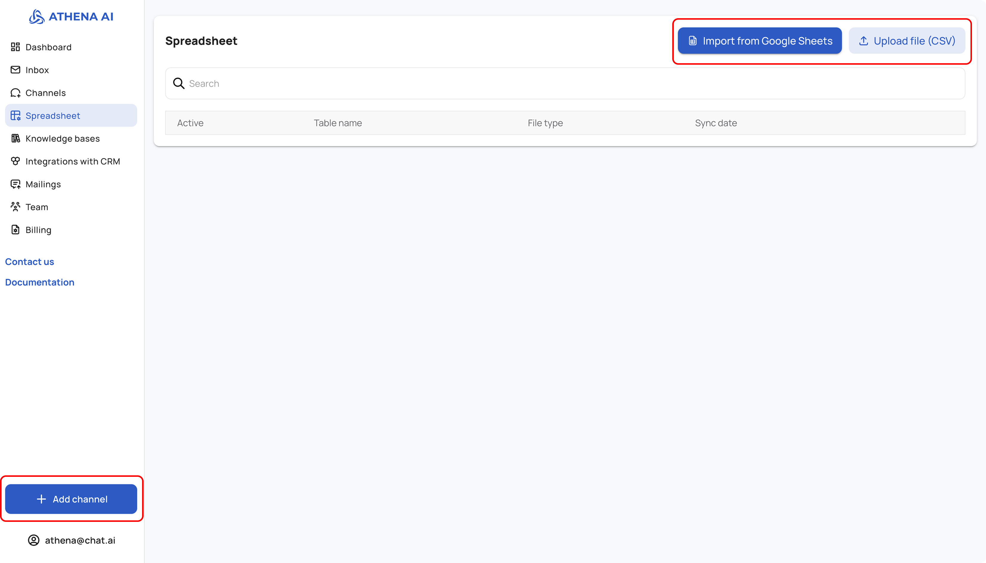 To add a spreadsheet, go to the Spreadsheets Section -> Upload Google Sheet or CSV file -> Upload your spreadsheet.
