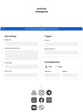Once the knowledge base is populated, it can be connected to the necessary channels. There are two ways to do this: via the "Channels" tab in the knowledge base section, or through the settings of a specific channel.