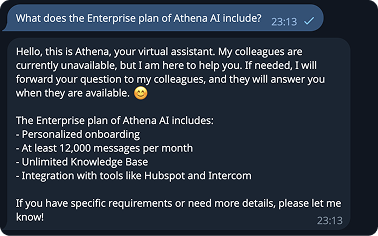 Thank you! Enjoy using Athena AI. If you have any questions, do not hesitate to contact us at any time. Our team will be happy to provide you with the necessary information.