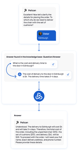 If the meaning of the customer's message matches the information in the "question" column, Athena will select the corresponding answer. By default, the answer text may be automatically rephrased by the AI. If you need the answer to be provided exactly as it is specified in the "answer" column, activate the "No AI in Response" toggle.