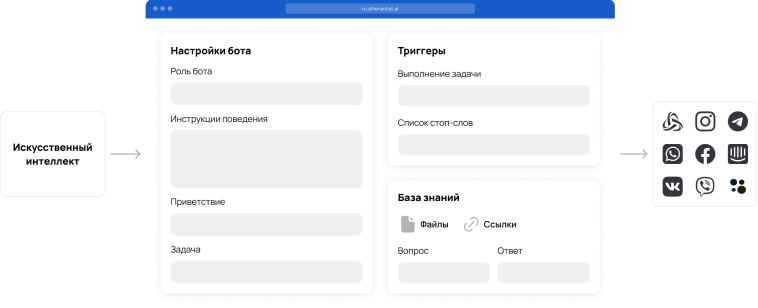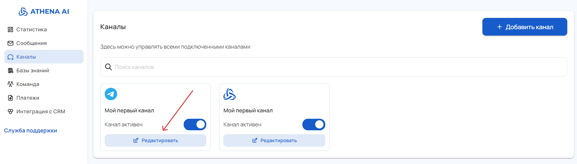 Once the knowledge base is populated, it can be connected to the necessary channels. There are two ways to do this: via the "Channels" tab in the knowledge base section, or through the settings of a specific channel.
