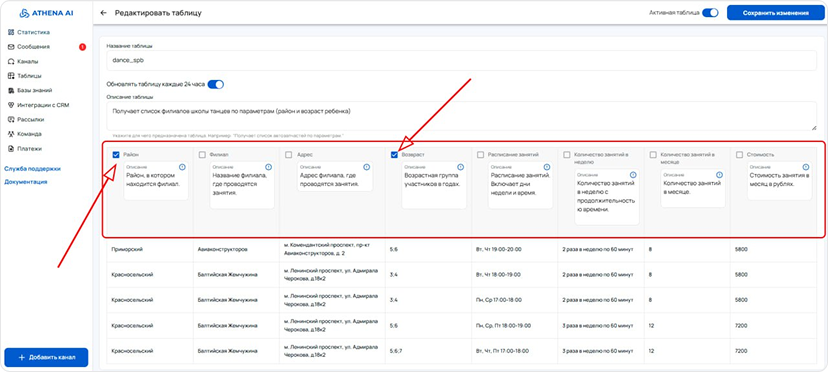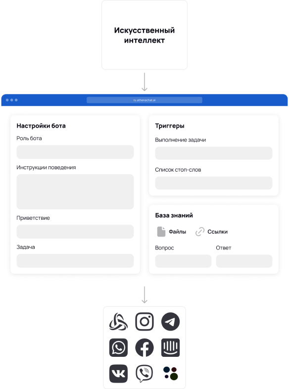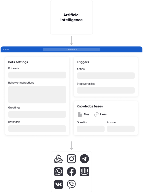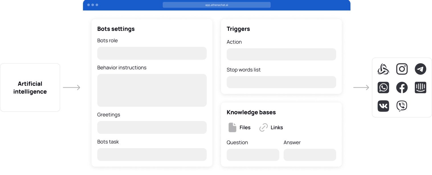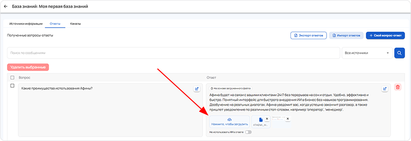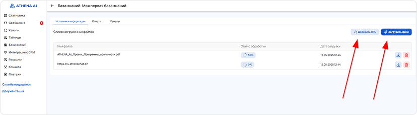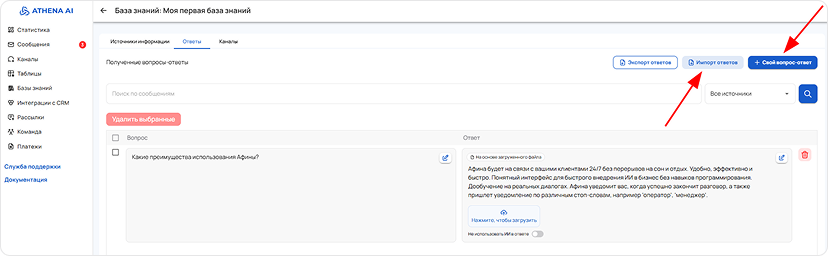 The Knowledge Base is a tool that allows Athena to use the information you provide to answer questions. It is an organized set of data that the AI agent refers to when searching for necessary answers. An effective combination of the knowledge base and AI agent settings ensures the achievement of desired results in the system's operation.