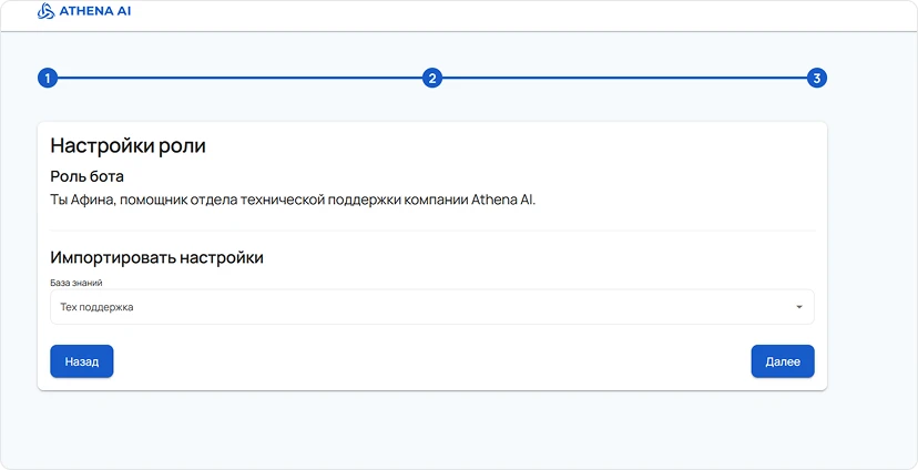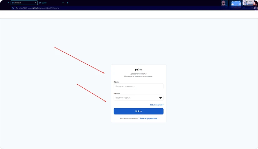На данном этапе необходимо задать параметры для работы Битрикс24 и Афины ИИ: