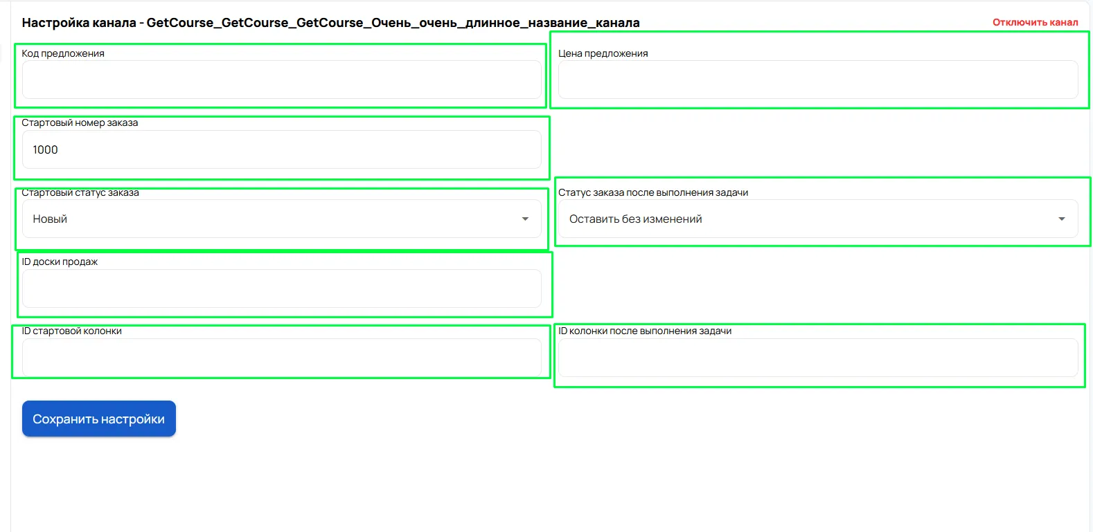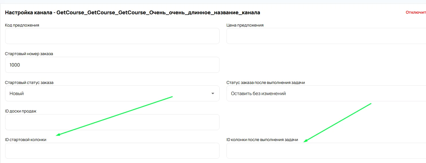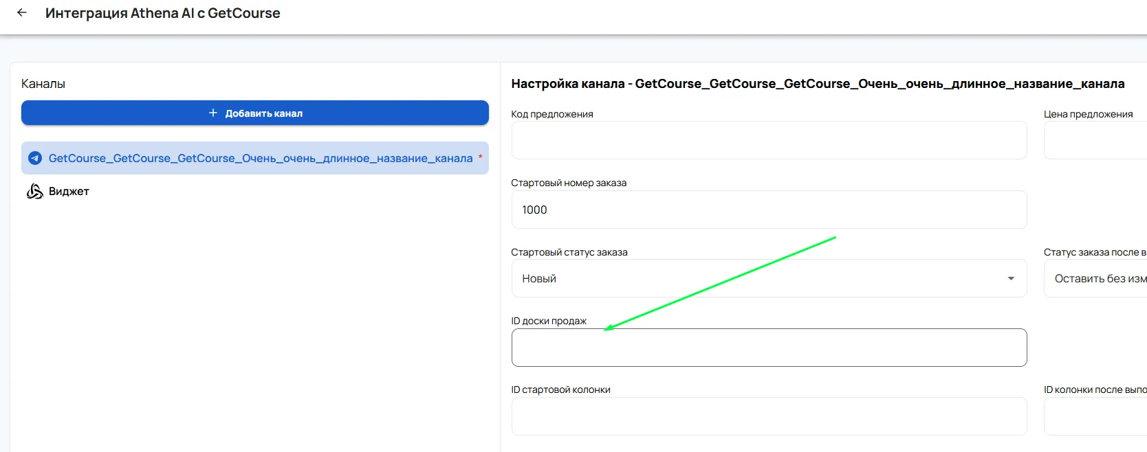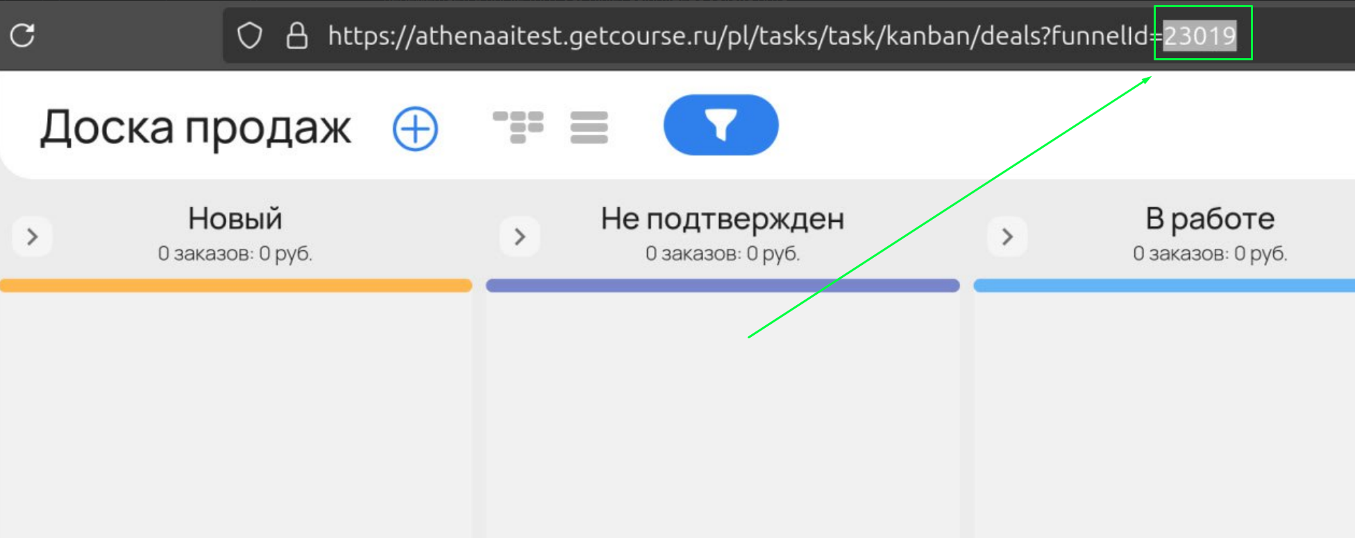 Перейти в доску продаж -> скопировать id -> вставить в поле ID доски продаж в настройках интеграции