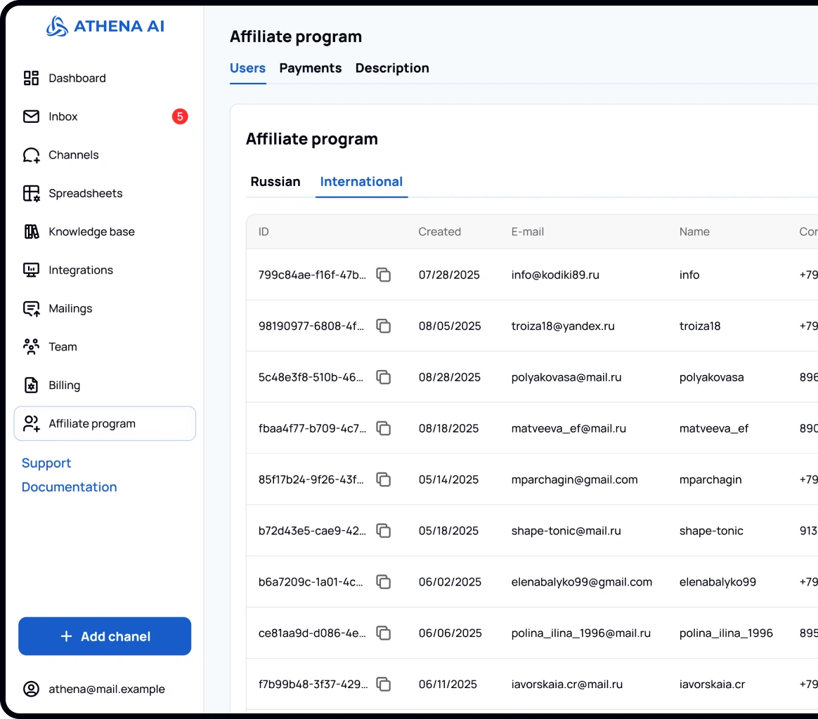 Join the Athena AI partner program and get all the tools for stable income
